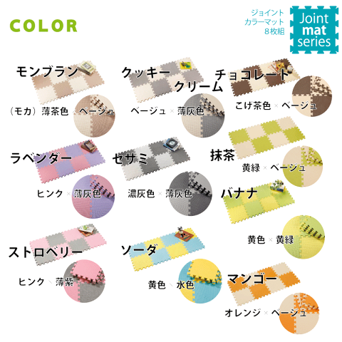 ■シービージャパン製■ ■特長■ クッションマット プレイマット くみあわせマット組み合わせマット カラーマット フロアマット ベビーマット 赤ちゃん エクササイズマット おむつ替えマット パズルマット やわらかフロアマット ジョイント式マット 大判 防音 ベビー キッズルーム 60cm 60cm×60cm ジョイントマット ジョイント式マット カラーマット シービージャパン CBジャパン チョコレート 4560108667032 ソーダ 4560108667506 ストロベリー 4560108667490 抹茶 4560108669173 マンゴー 4560108669166 バナナ 4560108669623 ラベンダー 4560108669593 クッキークリーム 4560108669630 セサミ 4560108669609 モンブラン 4560108669616LivingEarth リビングアース CBジャパン シービージャパン ジョイントカラーマット 8枚組セット 16枚組セット 32枚組セット(約1.5畳用) 64枚組セット(約:3畳用) 80枚(約4.5畳用セット) 96枚組(約4.5畳用セット) 112枚組セット(約6畳用) 128枚組(約:6畳用)